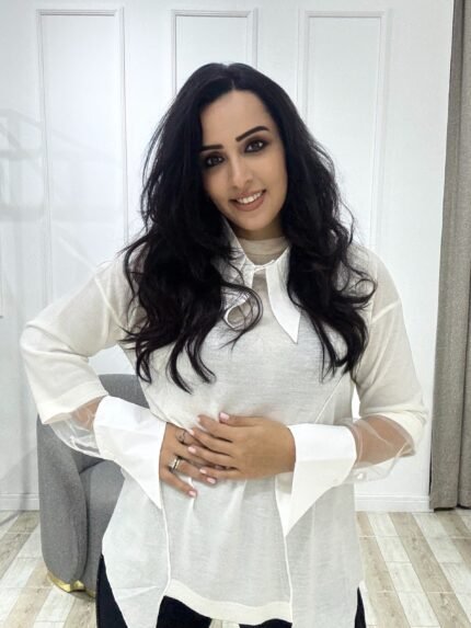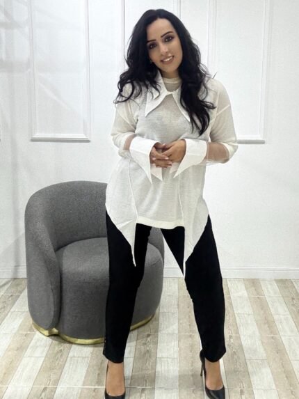 Tasarım çıkma yaka asimetrik triko