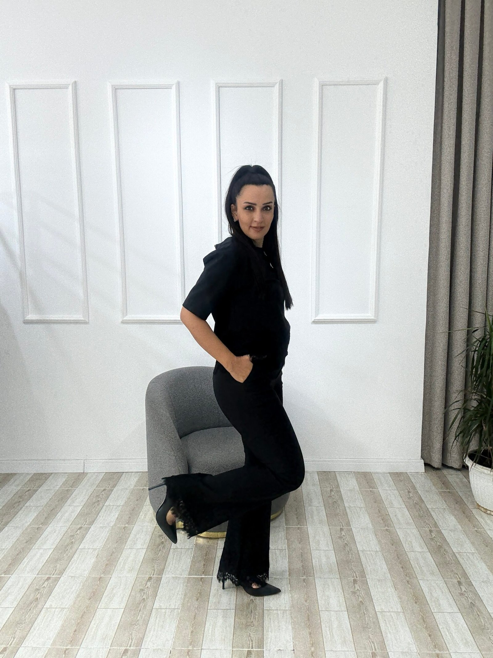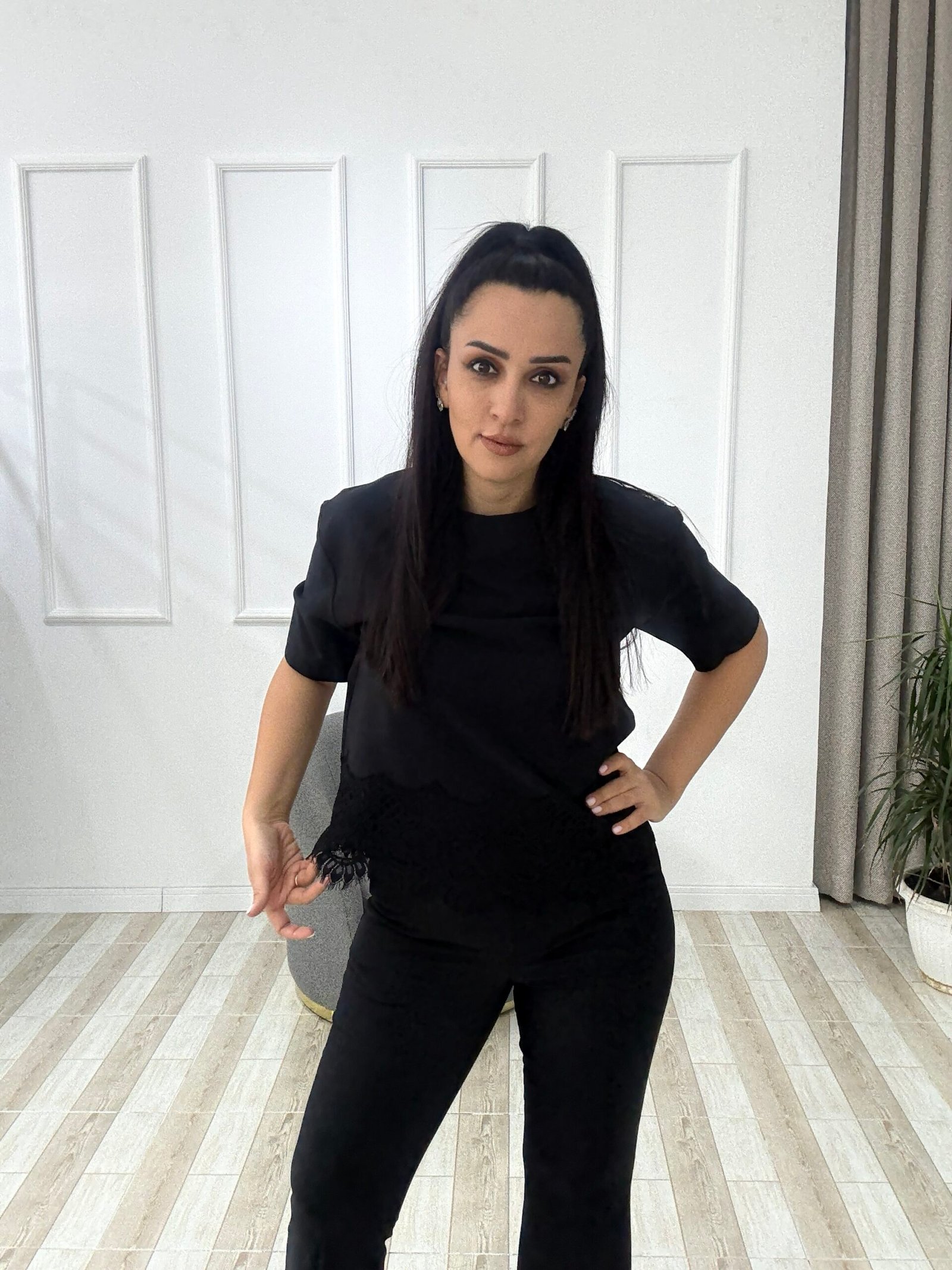 Dantel Detaylı Siyah Takım