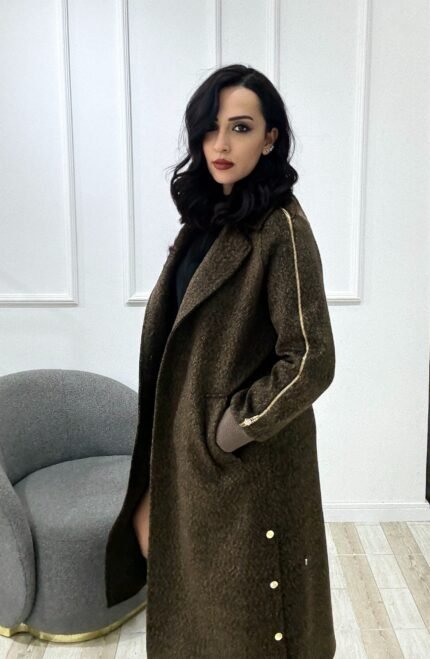 Fermuar ve çıt çıt detaylı kaşe kaban