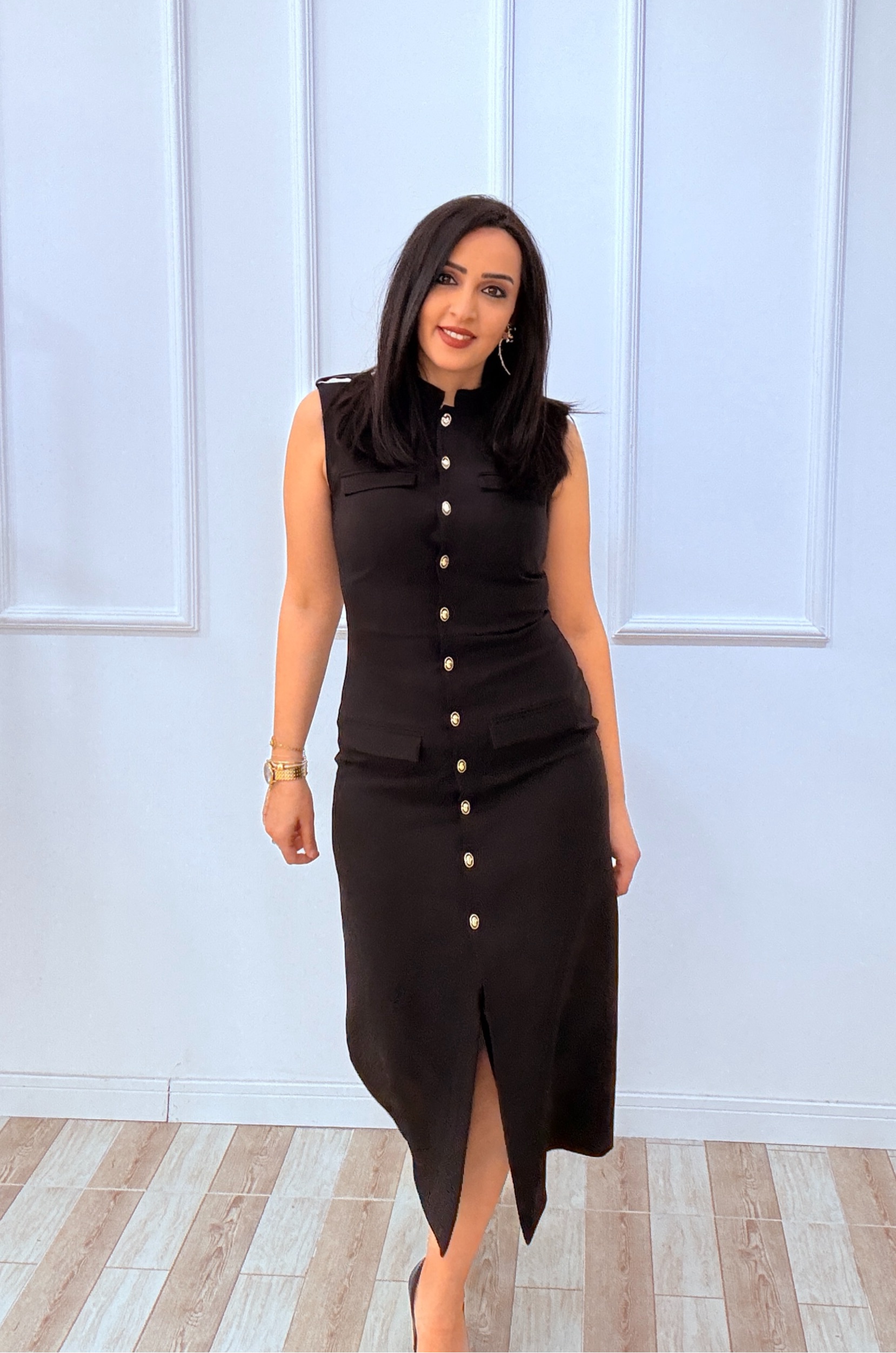 Vatkalı ekru şeritli bomber ceket önden yırtmaçlı düğme detaylı etek 2 li takım